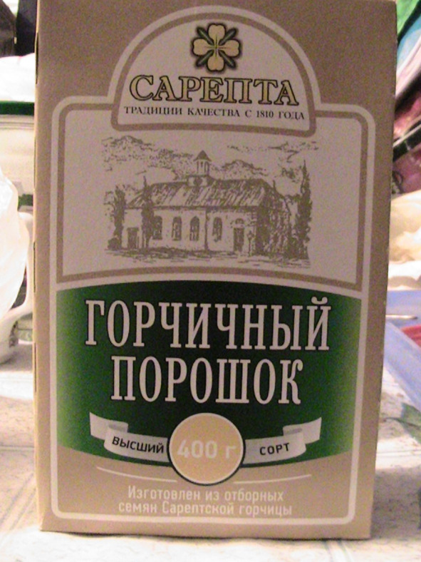 Берём пачку «горчичного порошка», весом -400 грамм. Я брал в «магнтите». Вот этот: «Густов», по 65 рублей.