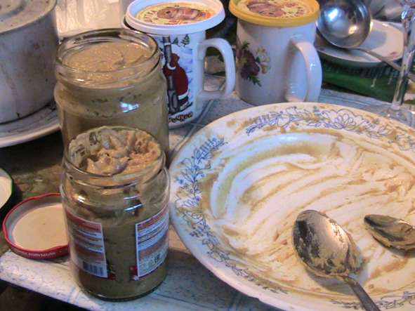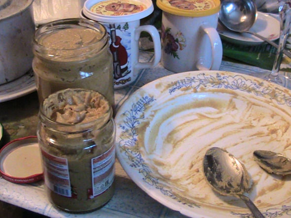 «Приготовление горчицы из 6 столовых ложек горчичного порошка».» Теперь – раскладываем приготовленную горчицу в те самые «270-граммовые» баночки…»