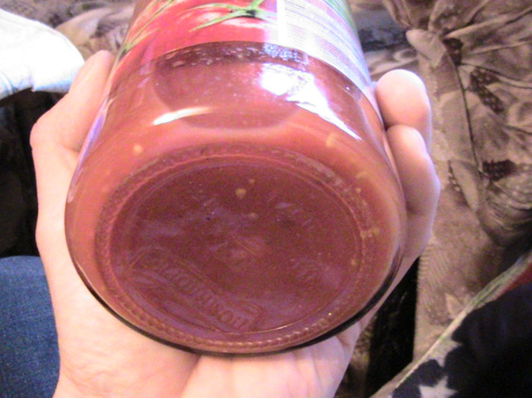 Вот как видны эти «помидорные вкрапления» семечек помидор: для этого ПРОСТО ХОРОШО ПОКРУТИ саму банку ТОМАТОВ: должны БЫТЬ ВИДНЫ жёлтые семечки помидор -СКВОЗЬ СТЕКЛО БАНКИ! Отчётливо семечки помидор НАСТОЯЩЕГО томатного сока -ОТЛИЧНО ВИДНЫ сквозь стекло банки: ОСОБЕННО ОТЧЁТЛИВЫ ЖЁЛТЫЕ семечки помидор -на ДНЕ БАНКИ: ПЕРЕВЕРНИ БАНКУ НА БОК и ВНИМАТЕЛЬНО ПОСМОТРИ.