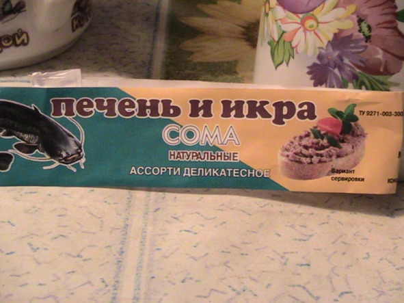 «Паштет „№3“ – „ПЕЧЕНЬ И ИКРА СОМА натуральные“, если вдруг увидишь в продаже: он -редкий продукт! Хорошо этикетка сохранилась!»