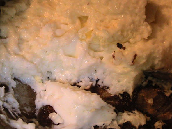 Разбить в алюминиевую для варки яичницы блюдо два яйца с желтками и ещё три белка от трёх яиц (желтки- не использовать).Влить молоко. всыпать пару -тройку крупных щепоток из трёх пальцев пряности: «сухая «смесь пряностей и специй аджика УЛЯПСКАЯ». Фото специи и упаковки есть в двадцать второй главе. Теперь венчиком – ВЗБИТЬ. Я так делаю. А можно просто слегка перемешать: не взбивая, а болтая до однородного состояния. Теперь поставить на самый малый огонь и плотно накрыть сверху другим блюдом или крышкой. Или тарелкой! Что есть-под рукой. Через 5 минут, как яичница уже «схватится», снять крышку и слегка сыроватой -уже можно есть!