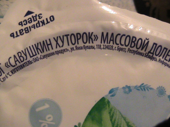 «Мой выбор -2019»: «Савушкин ХУТОРОК», творог -1% жирности производства г. Брест республики Беларусь! УДОБНАЯ и ПРАКТИЧНАЯ упаковка, дающая возможность перекусить творогом – В ЛЮБОМ МЕСТЕ, чайной ложкой, ВСЕГДА, при необходимости, носимой везде с собой в пакете. Или даже..БЕЗ ЛОЖКИ под рукой: ешь- КАК «ПОЛЕЗНЫЙ СЭНДВИЧ»!» Вот этот творог в УДОБНОЙ и ПРАКТИЧНОЙ УПАКОВКЕ: продаётся всё в том же «Магните» -по 109 рублей за 300-граммовую упаковку».