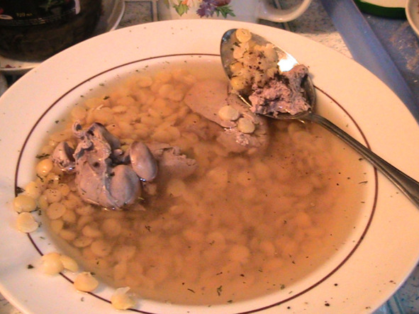 Вот ещё один мой супчик: гороховый с куриной печенью.