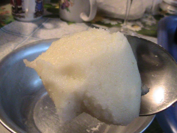 Есть ещё «кукурузная» каша (жёлтая такая крупа).Варил её как-то пару раз, но что-то мне не приглянулась она. Вот: на эти же 1 стакан плюс 1 см. в нём-4 столовые ложки кукурузной крупы. Есть её готовую.– посыпая сахаром слегка.