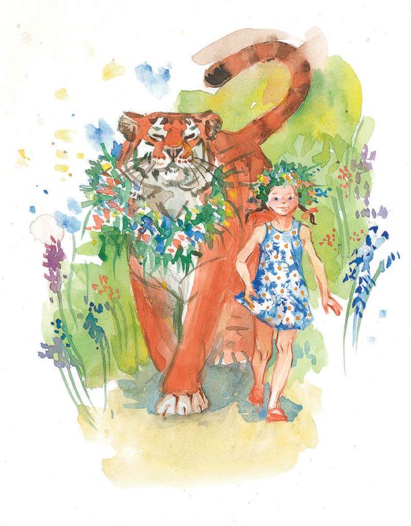 Девочка засмеялась, отпустила рыжее ухо и тихонечко дёрнула хищника за усы. Сейчас она находилась в тени: огромная рыжая полосатая голова заслоняла ей солнце, и больше не приходилось жмуриться. Смотря прямо в глаза тигру, девочка улыбнулась и ласково приказала: