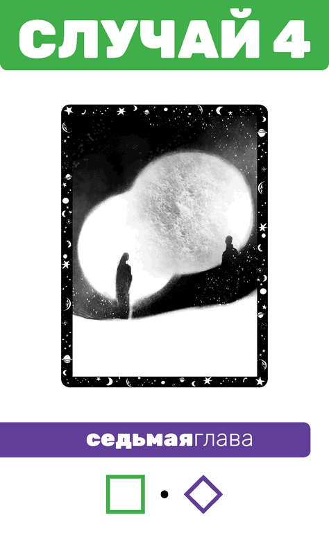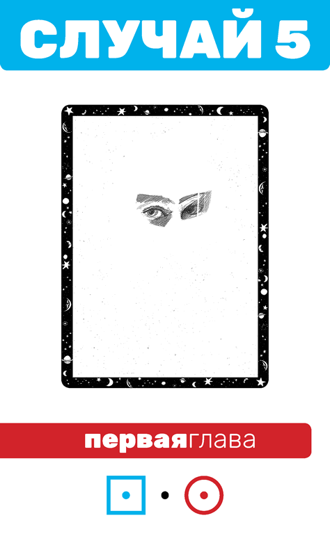 Сделав максимальный зум, девушка обнаружила лишь атомы. Точно такие же, как дома. Она расширила глаза, и изображение отдалилось, а на уровне пола возникла чёрно-белая точка: ◒