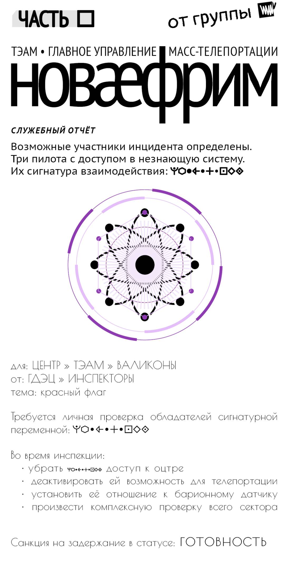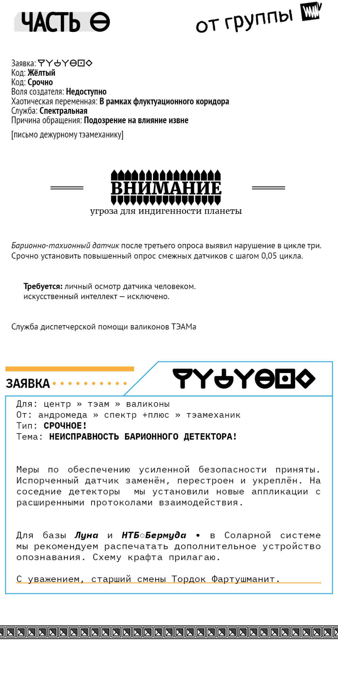 – Астрокурьерий. Блокировать системы ваши. Отослать указанный сектор телепортации. Запретить перемещение другая точка. Стоп-сигнатура-лист. Внутренняя процедура авторизации – квадратическая. До встреч.