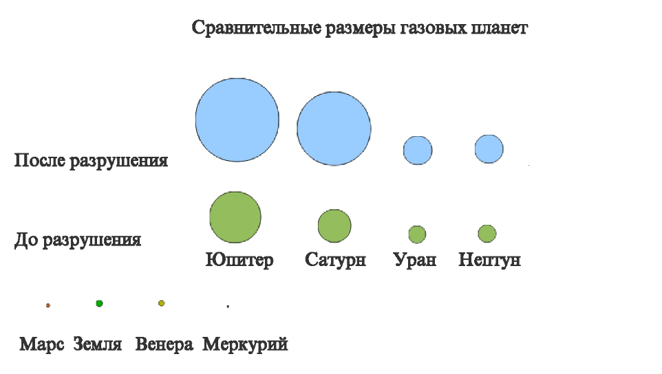 Как видно из картинки, после разрушения произошло значительное увеличение объема планет, за счет уменьшения плотности.