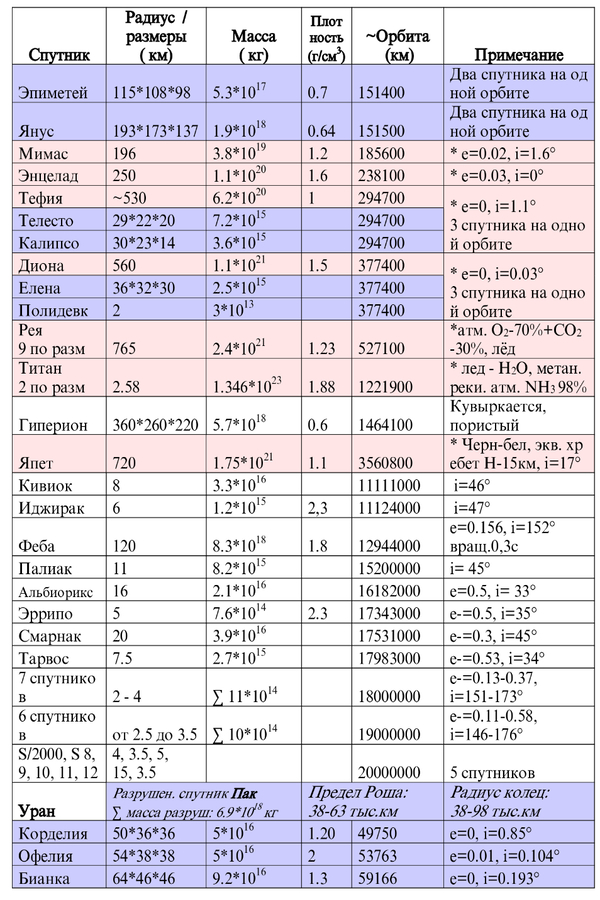 Сатурн: Титан, Рея, Япет, Диона, Тефия, Энцелад, Мимас.