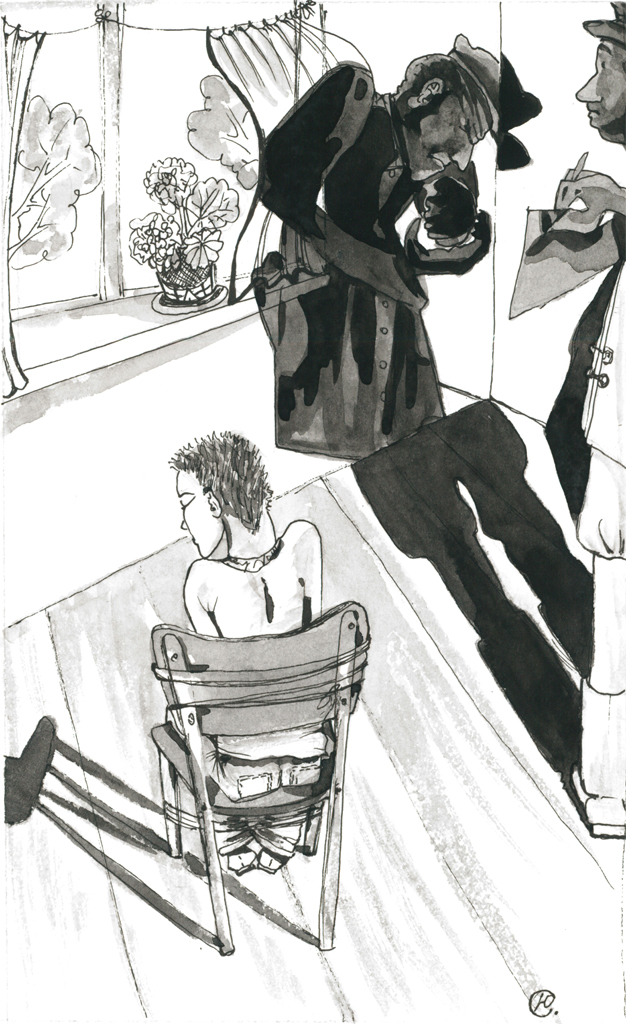 Подросток молча смотрел на лейтенанта, широко улыбаясь. Человек в халате достал из кармана блокнот и ручку и начал что-то записывать.