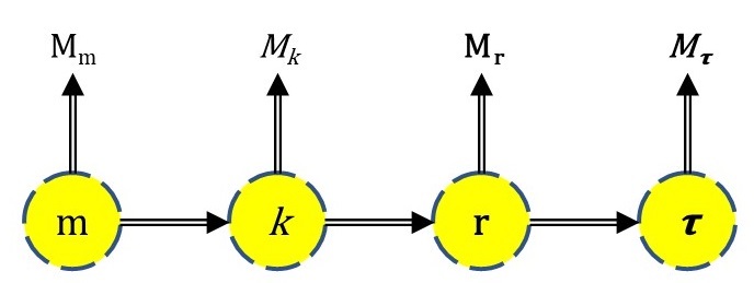 Mm – множество; Mk – множество комплексов; Mr – множество векторов; M𝛕 – множество тензоров.