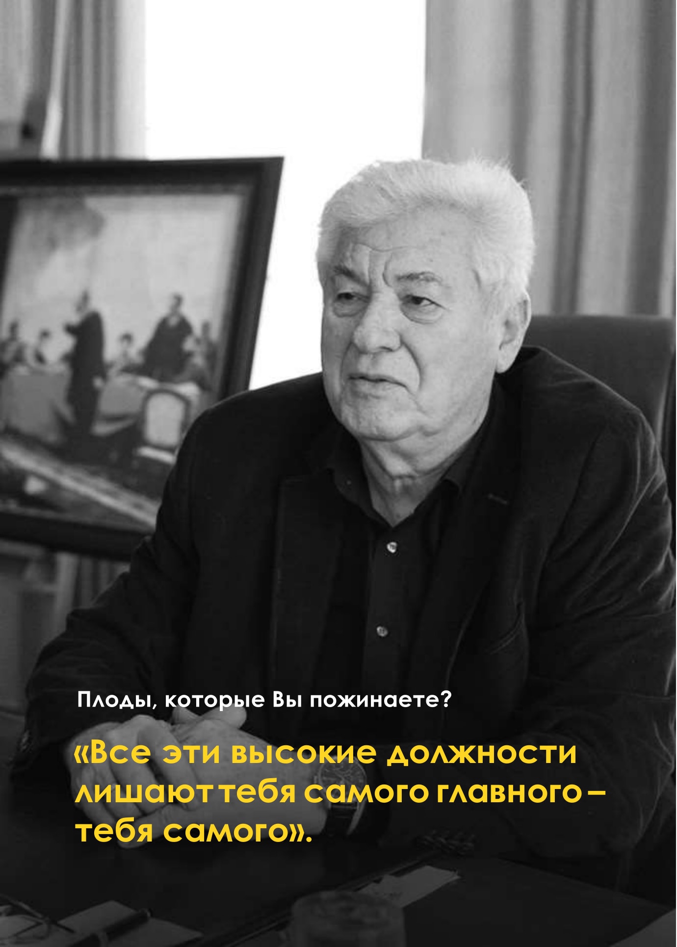 С первого класса я был старостой – с этого всё и началось. Хочу отметить, что сам я никуда и никогда не просился, не был выскочкой. Раньше не приветствовался карьеризм. Выскочек и карьеристов откровенно не любили. Однако, с самого детства, меня замечали, а затем поступали предложения взять ответственность за тот или иной пост/должность. День за днём я Сам шёл по ступеням собственной жизни. Мне никто и ничего просто так не давал. Позже, после потери власти, в другие партии с так называемыми «выгодными условиями», я не ушёл. Мои жизненные принципы никогда мне не позволяли совершать подобные шаги».