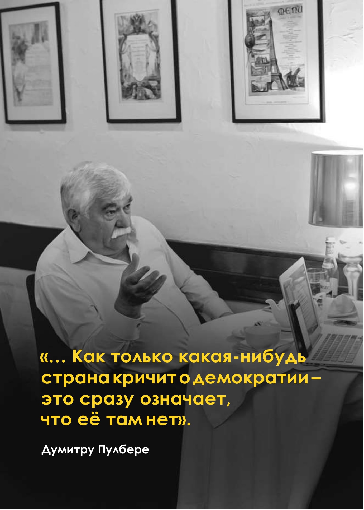 «Пушкаша купили за генеральский чин для его зятя. Чин Генерал-майора был присуждён зятю Пушкаша Марианом Лупу незадолго до 20 сентября, когда Конституционный суд рассматривал запрос Парламента по поводу избрания главы государства. Теперь Пушкаш ходит по разным телепередачам и рассказывает то одно, то другое вместо того, чтобы молчать, ведь он Судья Конституционного суда. А Пулбере, который сказал правду, потому что его обязанность – предупреждать политиков о нарушении Конституции, – был оштрафован и снят с должности».