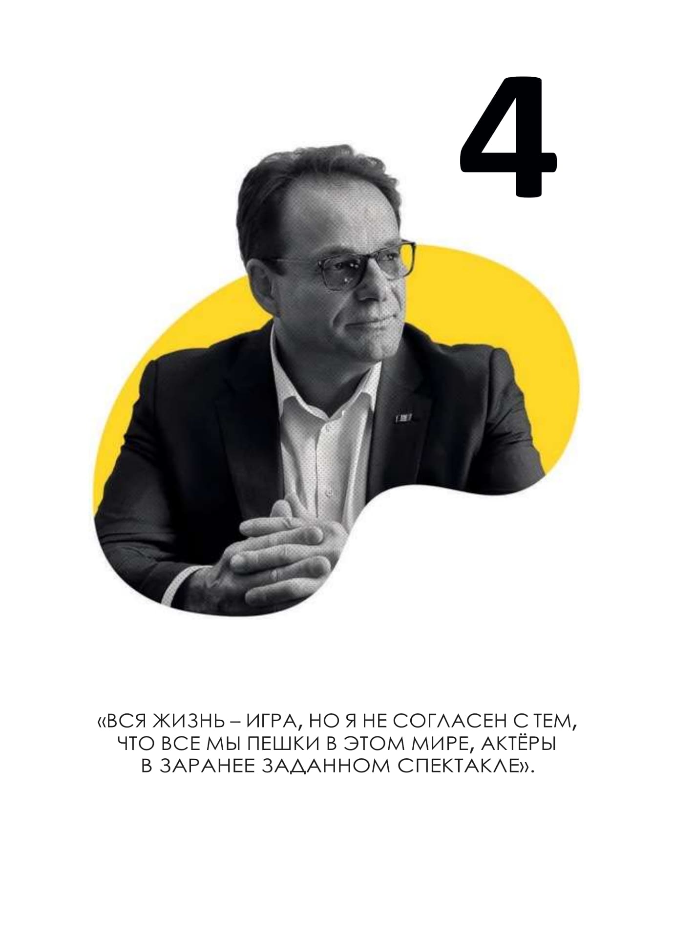 Вся жизнь – игра, но я не согласен с тем, что все мы пешки в этом мире, актёры в заранее заданном спектакле. Если говорить о моих играх – я не игрок. Во всех смыслах этого дела. Правда, однажды, я совершенно случайно обыграл в шахматы одного очень известного Кишинёвского шахматиста. Уже лет 20 он требует реванша, но эту победу я решил оставить себе.