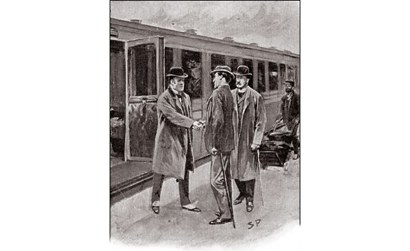 Закончив допрос свидетеля, Лестрейд и Шерман отвели нас с Холмсом в сторону посовещаться.