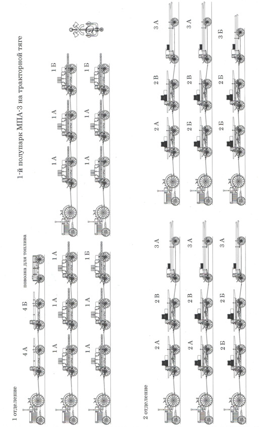 Из имущества парка предусматривалась сборка паромов и мостов для переправы дивизионной и корпусной артиллерии.