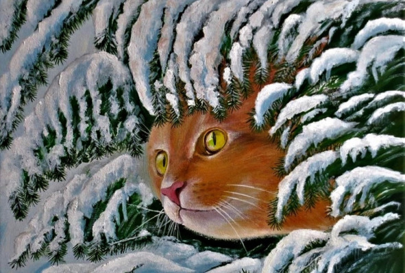Пробрался кот через сугробы в самую середину леса, а ни одного празднования Нового года ни под одной ёлкой так и не заметил.