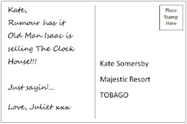 After the first one, she’d emailed Juliet and explained she wasn’t interested in hearing about the clock house, but clearly her words had been lost in translation. Admittedly they’d been shoved into the middle paragraphs about how beautiful Tobago was and all about the stunning humming-birds and the tranquillity of the rainforest areas and this gorgeous callaloo soup she’d tried because obviously she didn’t want to appear too weirded-out about The Clock House being up for sale.