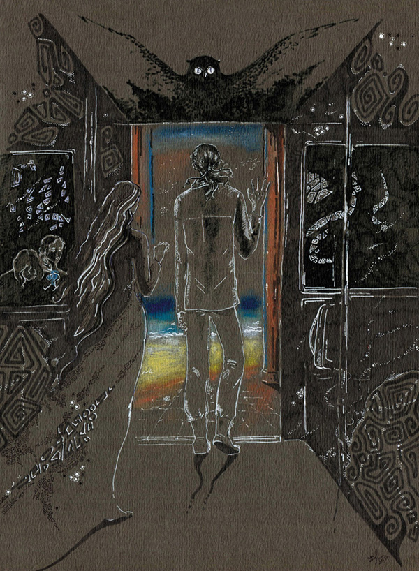 Мигнул желтый свет. Напротив парня сидела черноволосая женщина, держа сову на руке. Но казалось, кроме Макса ее никто не замечает, окунувшись в сон.