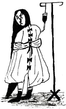 «В одном чёрном – чёрном лесу стоял чёрный – чёрный дом. В чёрном – чёрном доме была чёрная – чёрная комната. В чёрной – чёрной комнате стоял чёрный – чёрный стол. На чёрном – чёрном столе стоял чёрный – чёрный гроб. Из чёрного чёрного гроба вылез чёрный – чёрный человек и закричал: «отдай мне сердце!».