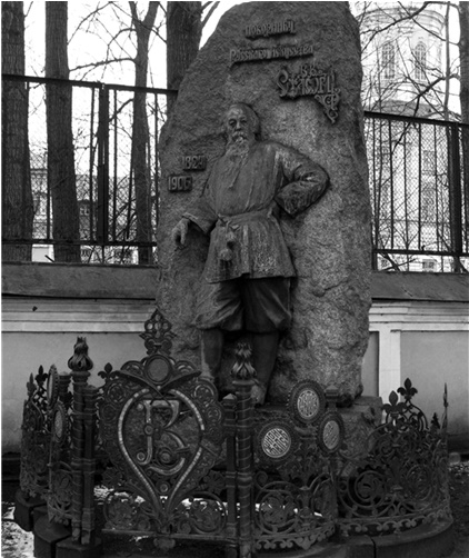 Рис. 3. Надгробие В. В. Стасова, скульптор И. Я. Гинзбург, архитектор И. П. Ропет (1908). Некрополь мастеров искусств Александро-Невской лавры в Санкт-Петербурге