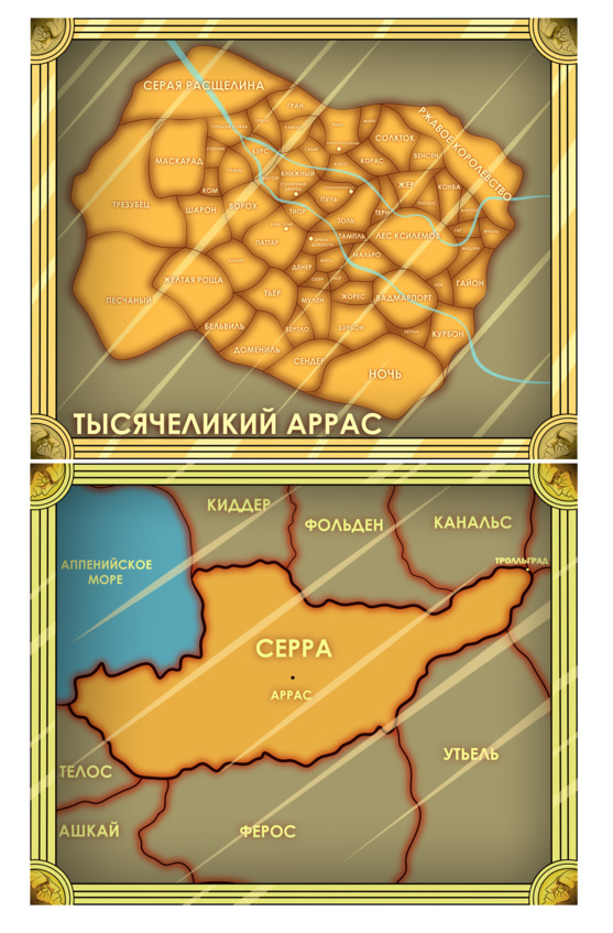 Я хотел придумать город по подобию Рапгара А. Ю. Пехова или Нью-Кробюзона Ч. Мьевиля, но несколько в других декорациях. Конечно, сравнивать тяжело, придуманный мной город менее детален, хотя и в нём имеется куча интересных мест. Путешествие по районам тысячеликого Арраса продолжается из одной главы в другую: из трущоб Ржавого королевства в престижные апартаменты Жёлтой рощи; из величественного Солнечного дворца в публичные дома Ночи; из Маскарада с домами, на которых растут человеческие глаза и рты, в тени Леса ксилемов; с кровавых песков Арены доблести прямо в бедные районы Трезубца. Аррас живёт, как и любой другой город, наполняясь каждый день различными историями о простых мечтах и любви, о предательстве и интригах.