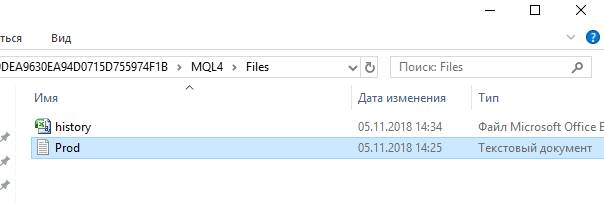 Запустив данный скрипт – в папке …MQL4/Filse каталога данных терминала, получим файл “history”.