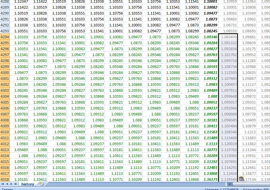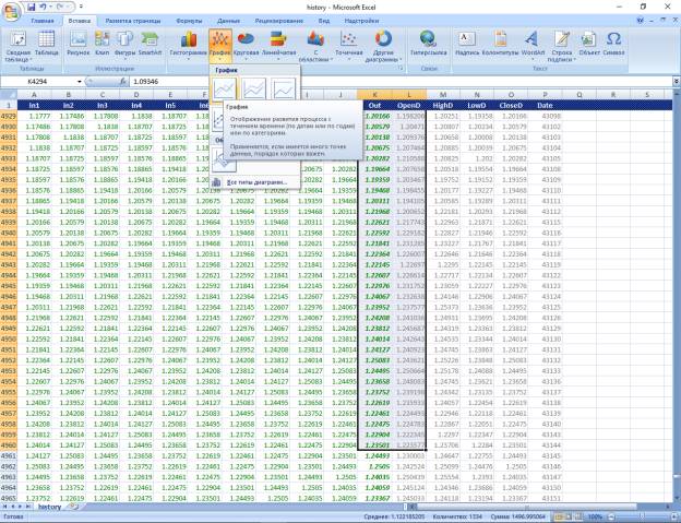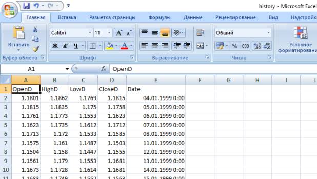 Заполним эти столбцы Данными из столбца CloseD. Как Вы уже поняли, это данные дневных закрытий.