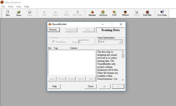 Откроем NeuroSolutions и нажмем кнопку NeuralBuilder.