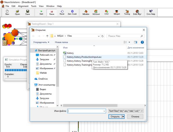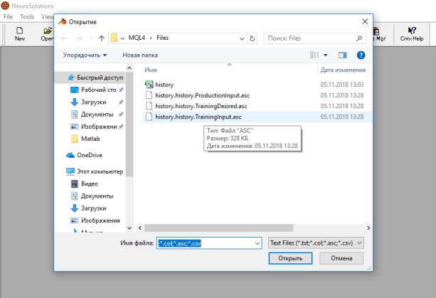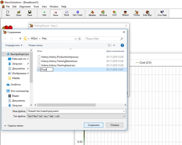 Теперь мы сформируем файлы для программы NeuroSolutions.