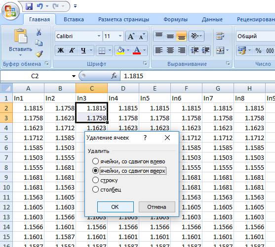 Далее мы сдвинем эти данные в наших столбцах последовательно на одну ячейку вверх.
