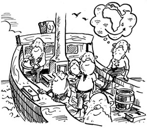 The Captain General put his fingers to his lips and winked. “His book has been a bestseller for a couple of centuries,” he whispered. “But just wait till mine hits the streets.” And he smiled knowingly. The strange thing is, I can’t find anything written down to say that’s where we’re heading. No-one else seems to know exactly where he’s taking us. But when the King and Queen give you an all-expenses-paid trip, you don’t argue.