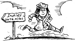 If he’s right, the Portuguese have discovered how to sail to the distant lands of Asia – the Indies. But having to sail right round Africa to get there will make it an awfully long trip – and however long would it take to get back?