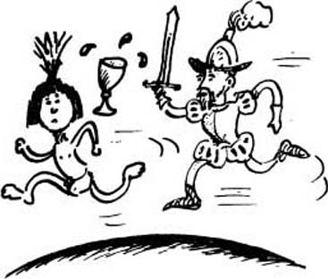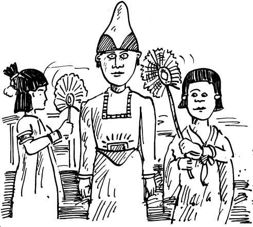 Once we were on the mountain, our nobles straightened their headdresses and went forward to meet the god. The funny thing was that he didn’t look that different from us. OK, his face was whiter and he had hair round his chin, and the skin round the top part of his body was hard and gleamed just like metal in the sun.
