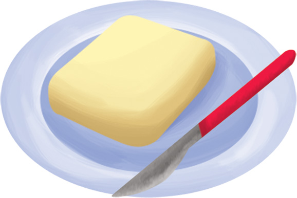 Butter is a soft yellow and white food that is made from cream. You spread it on bread or cook with it.