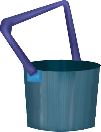 A bucket is a deep, round container with a handle that you use to hold or carry liquids.