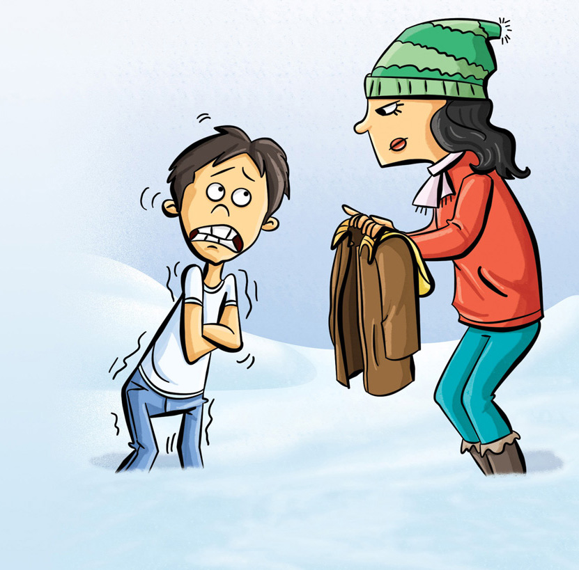 When you have a cold, you sneeze and cough a lot, and you have a sore throat.