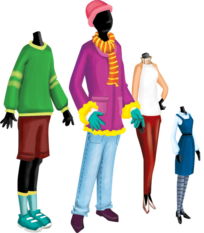 Clothes are the things that people wear, for example shirts, trousers, and dresses.