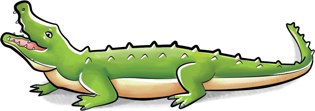 A crocodile is a large reptile with a long body, a long mouth and sharp teeth. Crocodiles’ mouths are in the shape of a letter V.