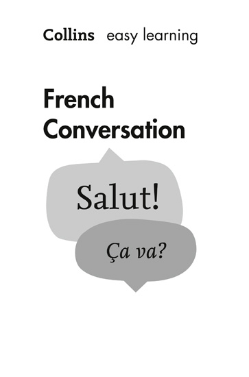 A conversation, by definition, is a two-way process. It is as important to understand what is being said to you as it is to be able to respond. At the end of each unit, there is a section headed Listen out for. Each of these sections gives you a variety of the most typical phrases you might hear in a given situation. Becoming familiar with these will allow you to have a successful conversation with a French speaker. For further help with pronunciation, a free download with all the important structures recorded is available on www.collins.co.uk/easylearningresources.