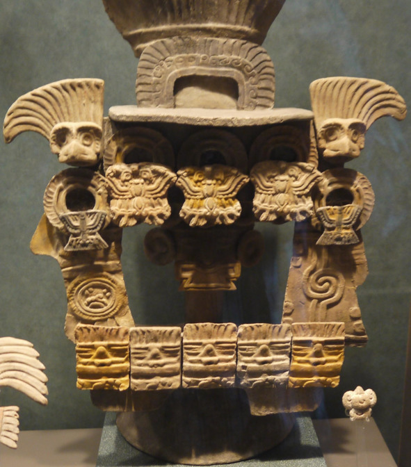 Составная курильница театрального типа. Была украшена слюдой и расписана жёлтой, белой, красной и чёрной красками. Национальный музей антропологии (Мексика). Инв. №10—0080432. 200—650 гг. 49,2х41,5х19,9 см. Фото: Д. Иванов
