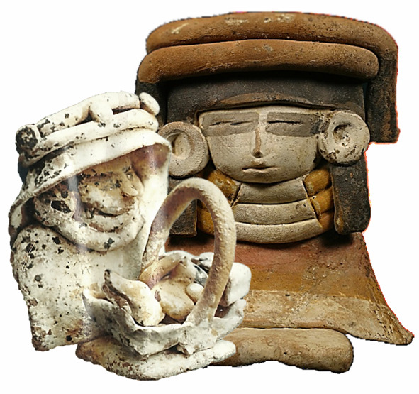 Обнаруженные в тайнике у конца Восточной дороги керамические фигурки женщин с ребёнком в люльке. Фото: Мигель Моралес (по J. Delgado Rubio «Las mujeres de Teotihuacán: prestigio, poder e incertidumbre», 2017)