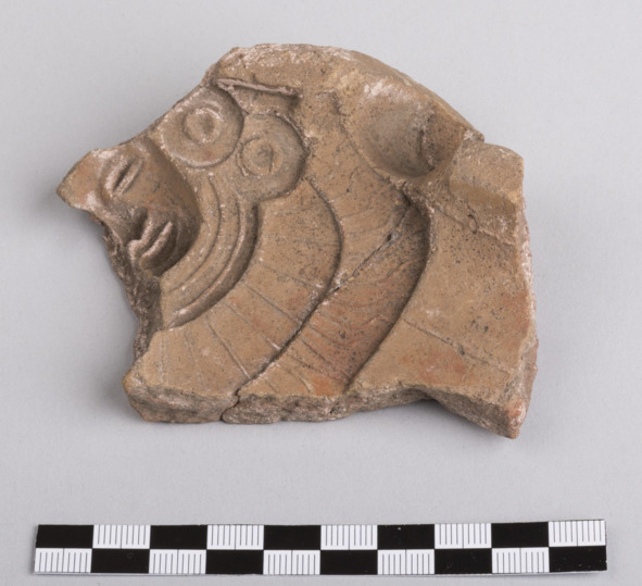 Найденная в Аскапоцалько глиняная форма для изготовления керамической фигурки в теотиуаканском стиле. Фрагмент. 300—650 гг. (коллекция МАЭ РАН, №5481—119)