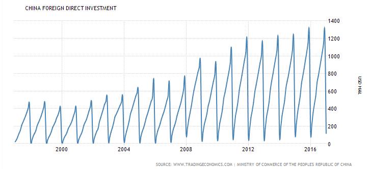 Так в докладе Конференции Организации Объединенных Наций по торговле и развитию (ЮНКТАД) в 2016 году было сказано, что в результате ПИИ Китай получил 139 миллиардов долларов США, и занял третье место после США и Великобритании по общему числу иностранных инвестиций в мире.