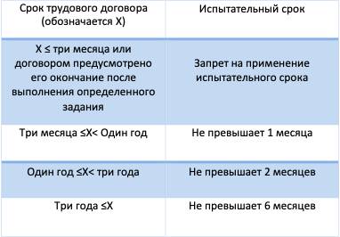 В таблице, расположенной внизу, вы сможете найти закреплённые законодательством варианты продолжительности испытательного срока.