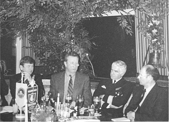 Konrad Reich während eines Hafenstammtisches mit dem heutigen Rostocker Oberbürgermeister Roland Methling (1. rechts) und dem Autor (1. links)