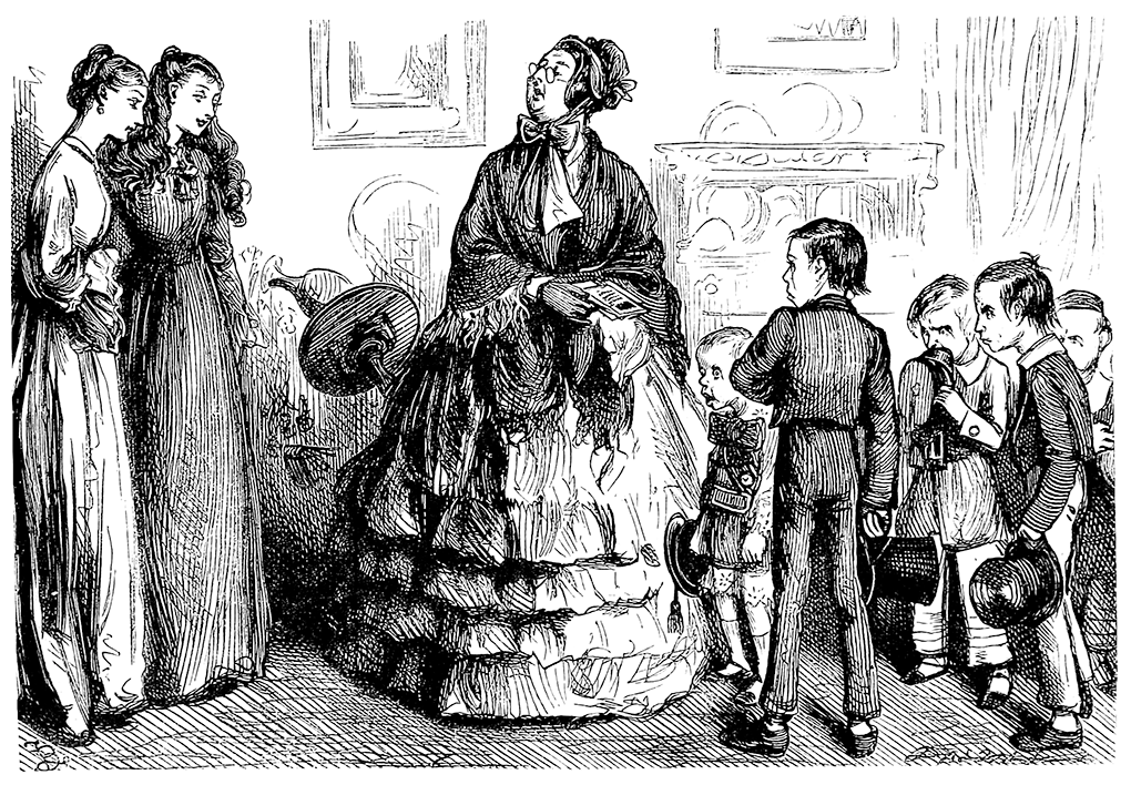– Разрешите, молодые леди, представить вам моих пятерых сыновей, – затараторила миссис Пардигл после первых приветствий. – Возможно, вы видели их имена (и, пожалуй, не раз) на печатных подписных листах, присланных нашему уважаемому другу мистеру Джарндису. Эгберт, мой старший сын (двенадцати лет) – это тот самый мальчик, который послал свои карманные деньги в сумме пяти шиллингов и трех пенсов индейцам Токехупо. Освальд, второй сын (десяти с половиной лет), – тот ребенок, который пожертвовал два шиллинга и девять пенсов на Памятник Великим Точильщикам нации. Фрэнсис, мой третий сын (девяти лет), дал шиллинг и шесть с половиной пенсов, а Феликс, четвертый сын (семи лет), – восемь пенсов на Перезрелых вдов; Альфред же, самый младший (пяти лет), добровольно записался в «Союз ликующих малюток» и дал зарок никогда в жизни не употреблять табака.