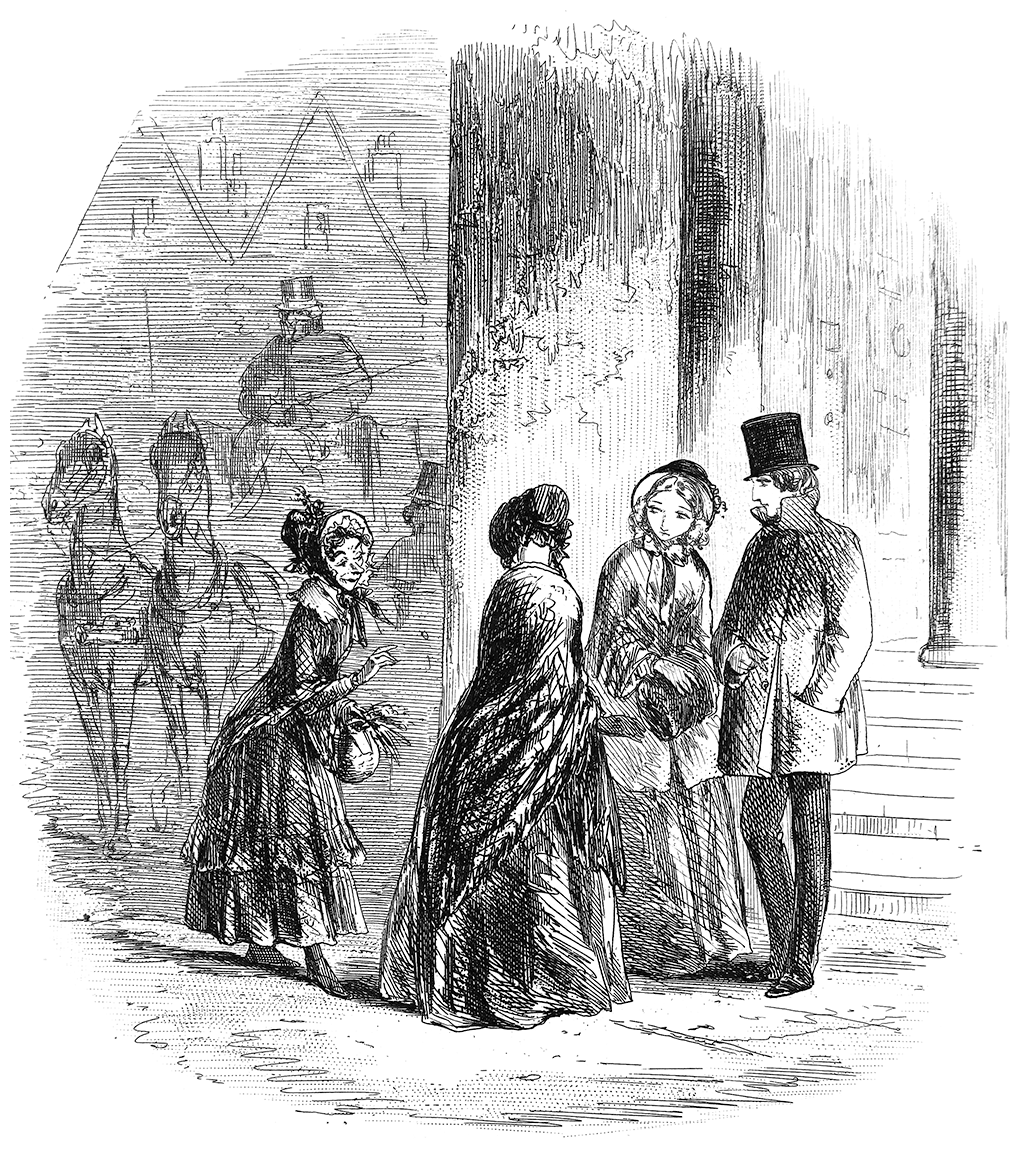 Когда мы дошли до колоннады, мистер Кендж вспомнил, что ему нужно на минуту вернуться за какой-то справкой, и оставил нас одних в тумане возле кареты лорд-канцлера, у которой стояли ожидавшие его слуги.