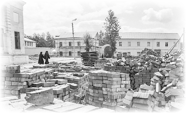Однажды, когда выдался теплый и солнечный день, всех нас, кто был тогда в общежитии и не занят на послушании, мобилизовали на переноску дров. Эти дрова привезли и свалили во дворе, а мы уже носили их, куда было нужно, и кто-то из знающих складывал их в громадные поленницы. К слову, эти поленницы метров до четырех высотой в виде такой аккуратной горки я в Оптиной увидел впервые и они меня удивили. Почему я говорю, что их надо было еще уметь уложить? Да именно потому, что дрова были здесь не просто свалены в кучу, а именно сложены по кругу в огромную поленницу, и хоть я понимаю, что для человека знающего – это, наверное, дело неудивительное и несложное, но для крымчанина такое было в диковинку.