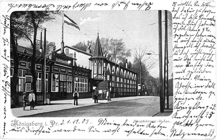 А в 1895 году там, где сейчас располагается «Горзеленхоз», было первое депо первого городского электрического трамвая. И электростанция, дававшая ему ток. Кстати, до 1912 года Хуфен относился к округу Фиршхаузен (аналог современного Зеленоградского района) и мог позволить себе определённые вольности. К примеру, в 1911 году в «Луизентеатре» на Хуфеналлее (ныне театр на Бассейной) была поставлена опера, по каким-то причинам не допущенная на сцену оперного театра в Кёнигсберге. Но… в 1912 году всё пришло к единому знаменателю.